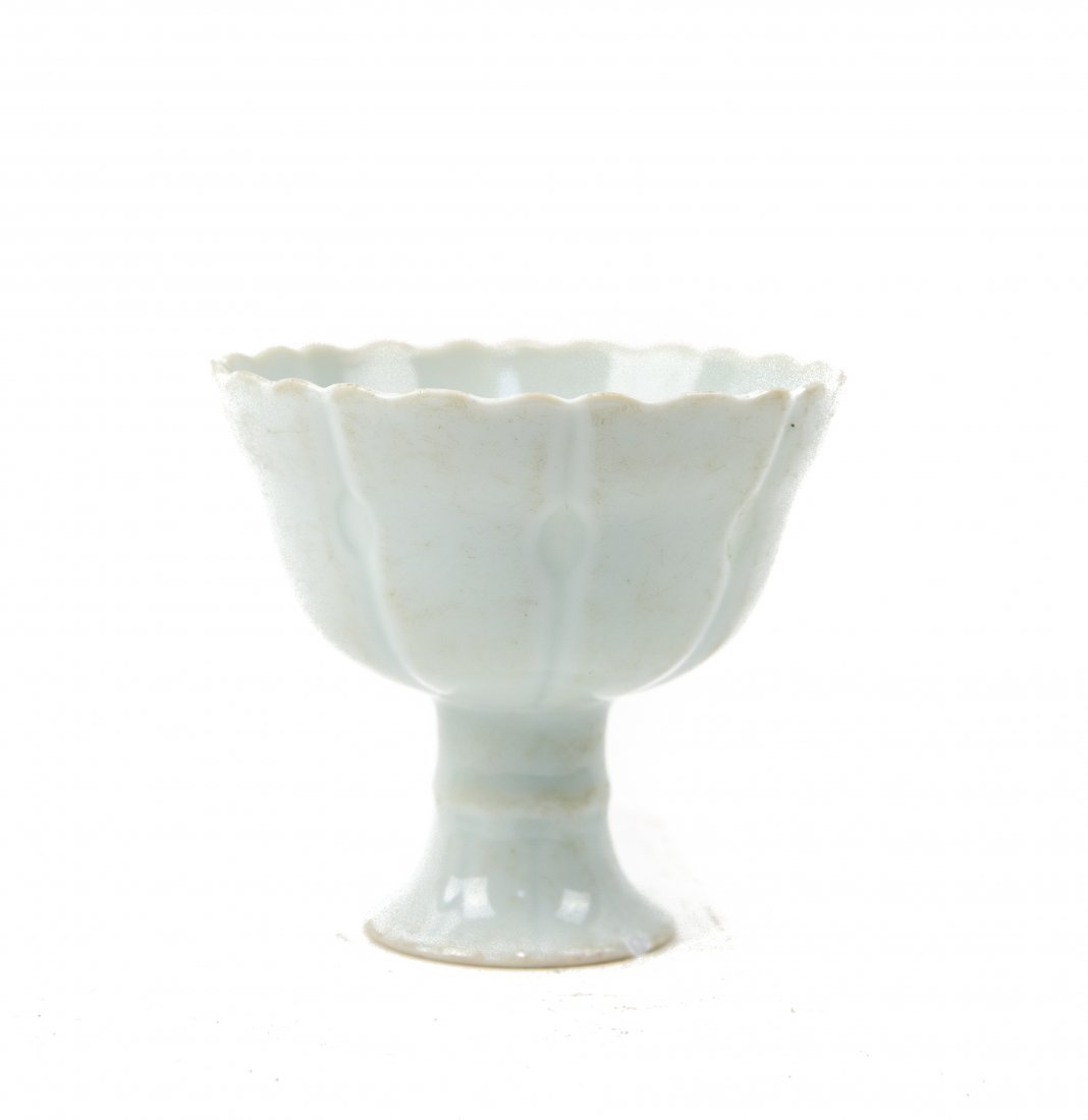 A CELADON-GLAZED PORCELAIN STEM CUP
