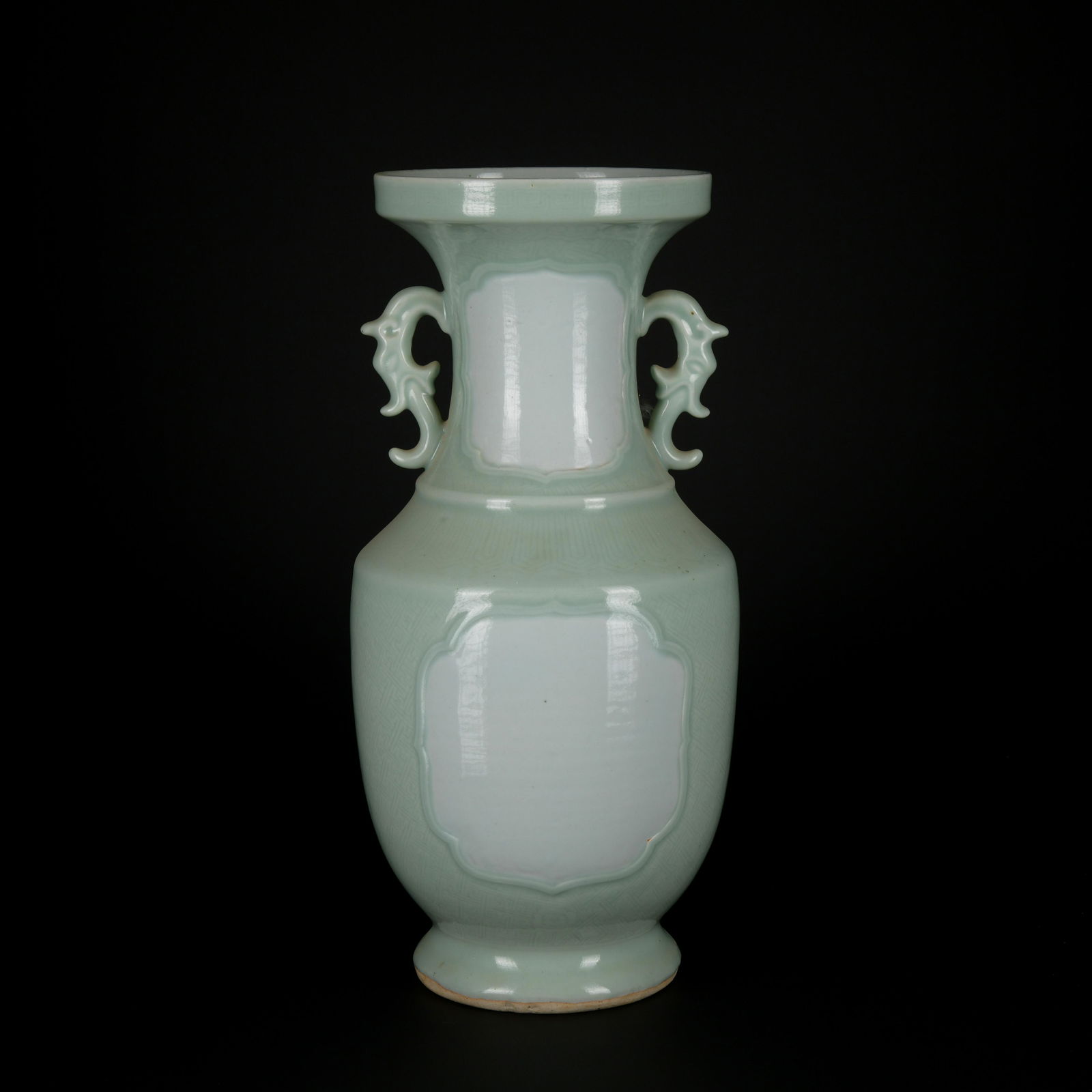 A celadon-glazed vase with two ears