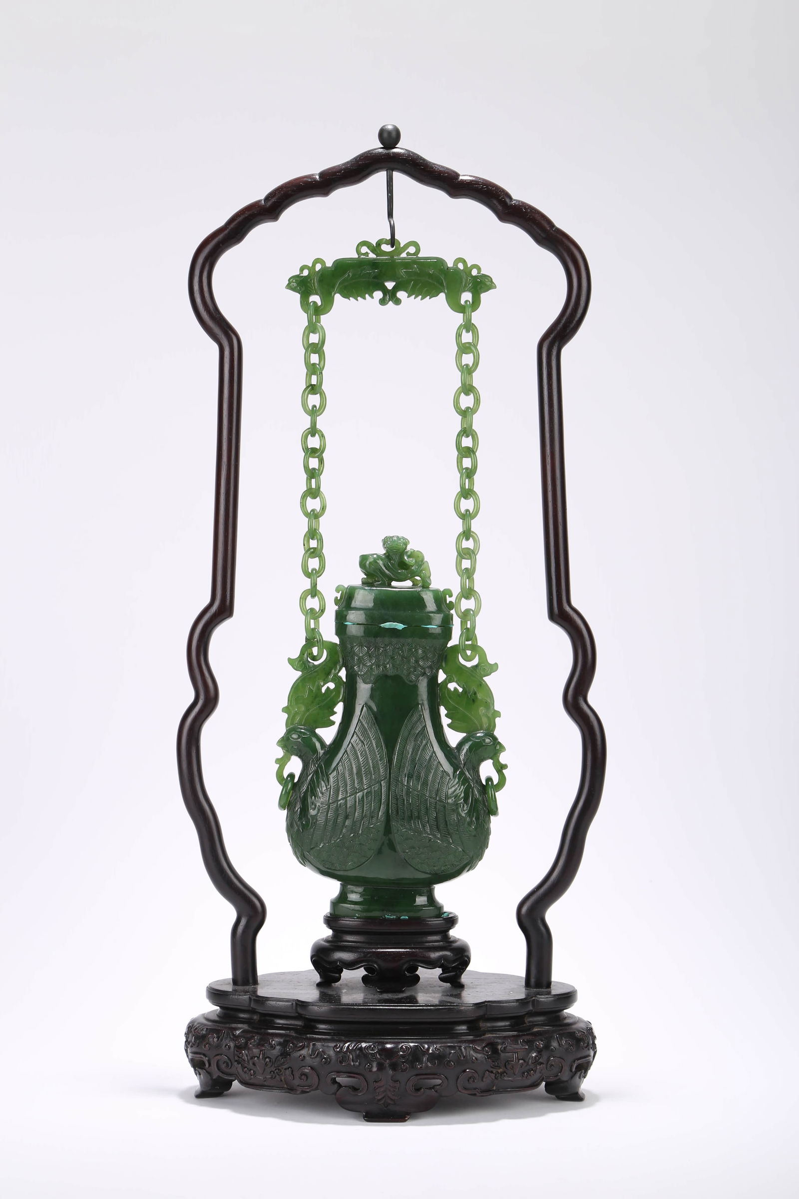 A Celadon Jade Vase With Wood Support