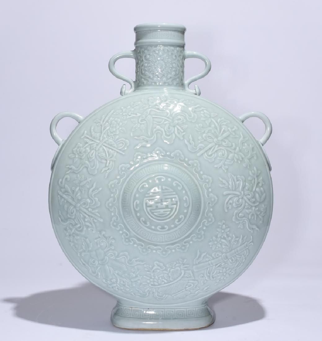 A CELADON MOON FLASK VASE, QIANLONG MARK