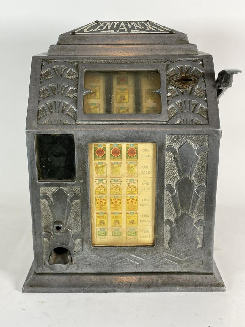 A CENT-A-PACK ART DECO SLOT MACHINE FORM CIGARETTE