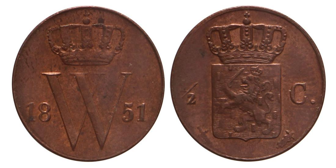 ½ Cent Willem III 1851. FDC.