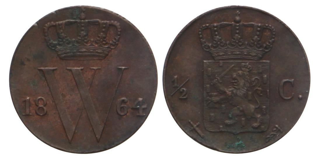 ½ Cent Willem III 1864. FDC -.