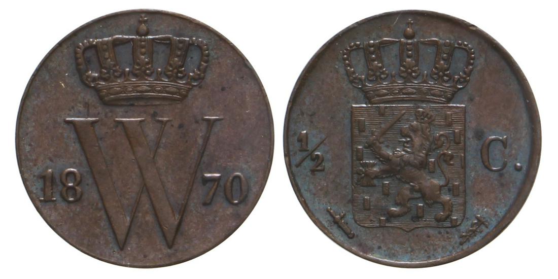 ½ Cent Willem III 1870. FDC.
