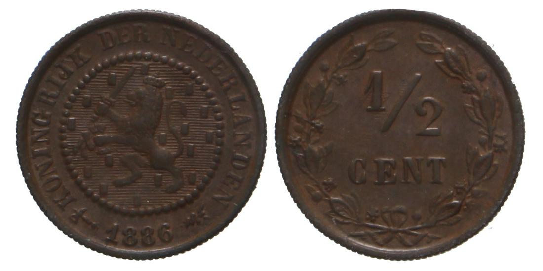 ½ Cent Willem III 1886. FDC.
