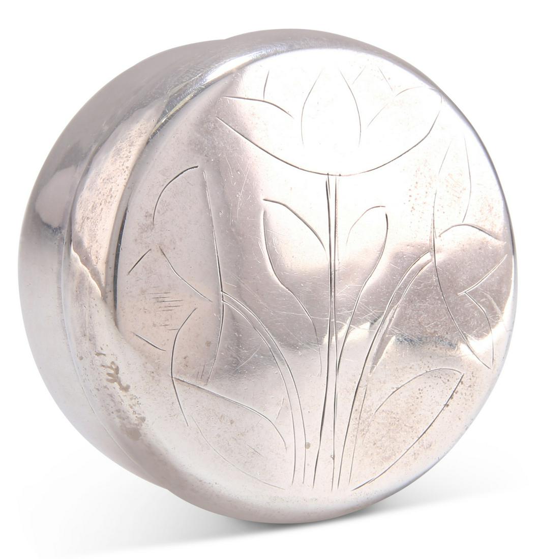 Antique Sterling Silver Trinket/Keepsake Case with Raised Floral Design18th Century Antique Silver Crown Heart Vinaigrette with Original Gilt InsideLondon 1676 by BR in monogram A Charles II sterling silver tobacco box23 hrs LeftProbably London circa 1720 A George I early 18th century unmarked silver tobacco box23 hrs LeftA SMALL SILVER HAMMERED BOWL AND COVER86 Lots AwayA SILVER ETROG BOX. Augsburg, 18th century.1 day LeftEngland circa 1750 A George II unmarked silver table double snuff box23 hrs LeftQueen Anne English Silver Sponge Box, Benjamin PyneFeb 24, 2026London 1716 by William Fleming A George I Britannia standard silver sugar bowl and cover23 hrs LeftA GEORGE II SILVER SUGAR CASTERMar 03, 2026A continental silver box probably Hanau, late 19th / early 20th century, unattributed makerLondon 1614 by BF? Benjamin Francis A James I sterling silver communion cup lid or paten23 hrs Left950 Silver Engraved Snuff Box, c. 1820, B&M Maker's Mark with Clover DeviceMar 08, 2026A CHARLES II SILVER PORRINGER AND COVER135 Lots AwayAntique Miracoli .800 Silver Trinket Box OrnateMar 04, 2026German Hanau 800 Silver Repousse Box C.1880-19105 days Left