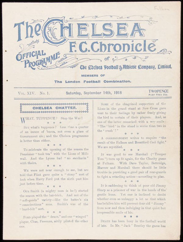 A Chelsea v Fulham First World War programme 14th