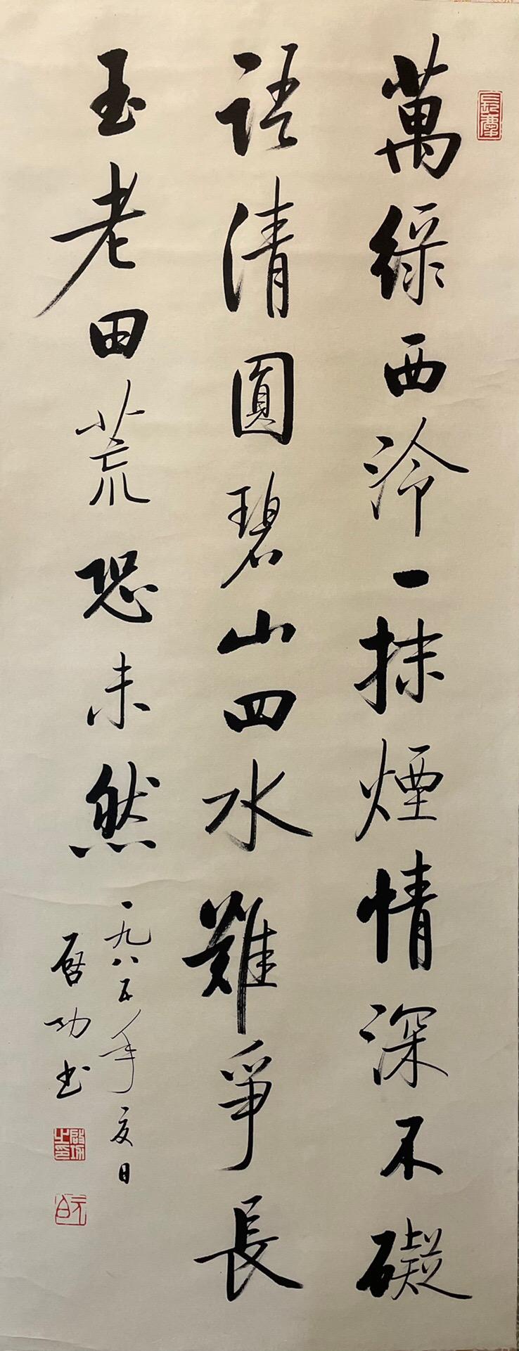 A CHENIESE CALLIGRAPHY SCROLL, QI GONG MARK