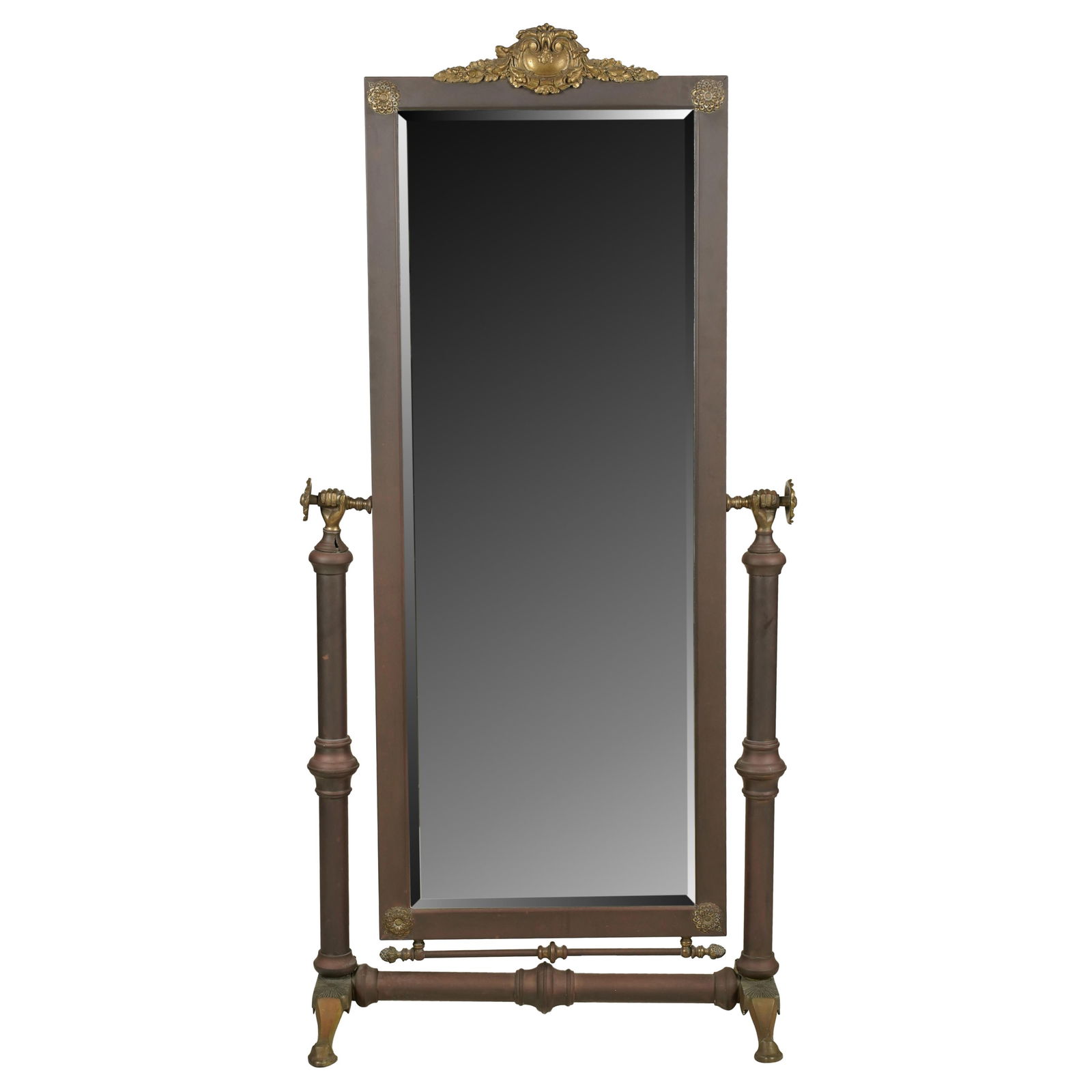 Sold19th Century French Empire Cheval MirrorWith Finely Cast Bronze Mounts And Beveled Mirrored Glass. 80h X 42w X 21.5d. Mirror Has Spot Of Damage. Veneer Is Missing And Or Peeling In A Few Areas. See Photos For Condition.See Sold Price