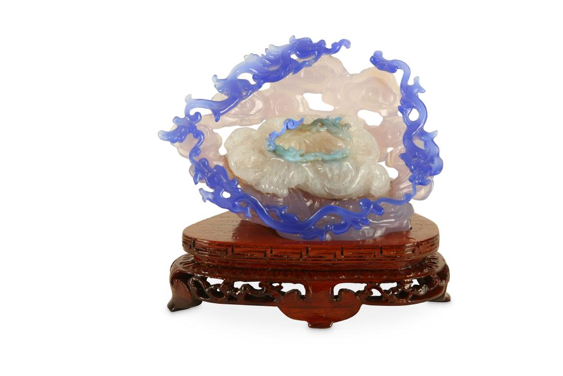 A CHINESE AGATE 'DRAGON AND CLOUDS' CARVING.