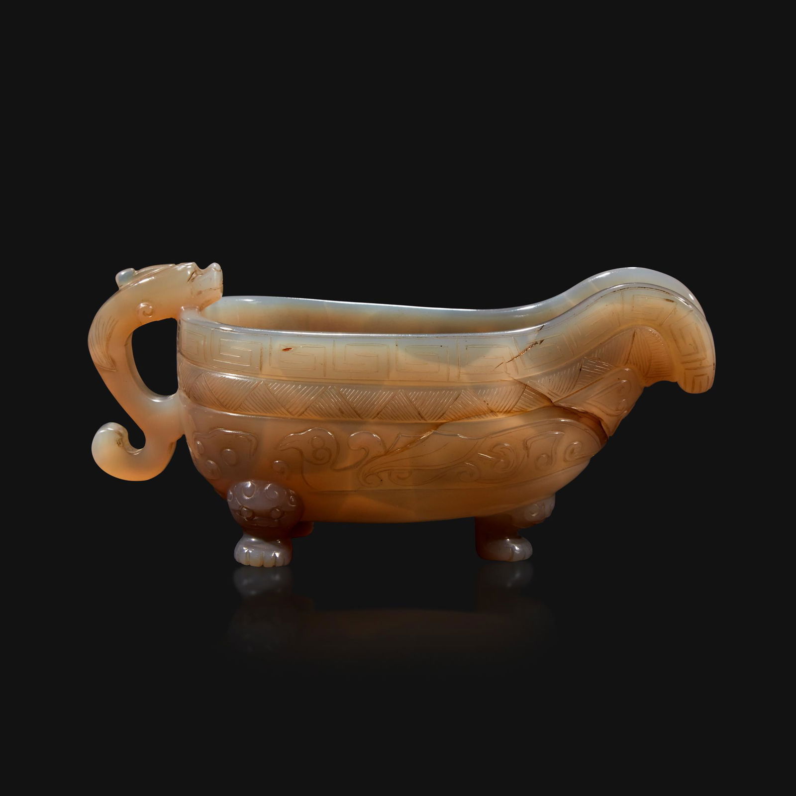 A Chinese archaistic carved agate libation cup
