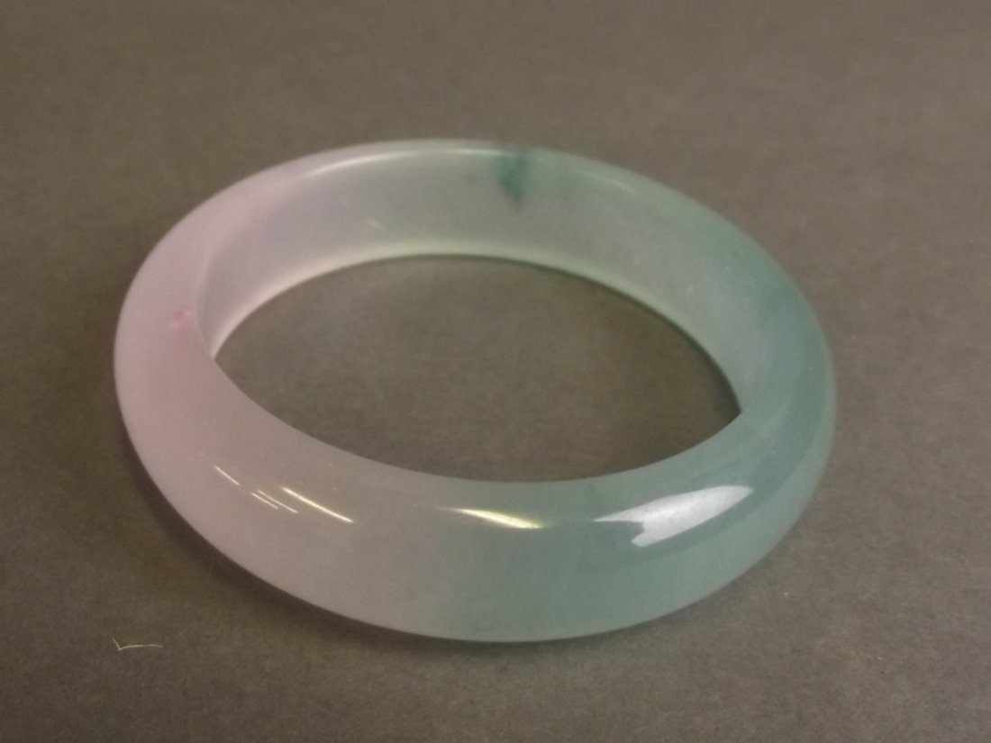 SoldA CHINESE TRI COLOUR JADE BANGLE. 110.3 grams. 6 cm internal width.A CHINESE TRI COLOUR JADE BANGLE. 110.3 grams. 6 cm internal width.See Sold Price