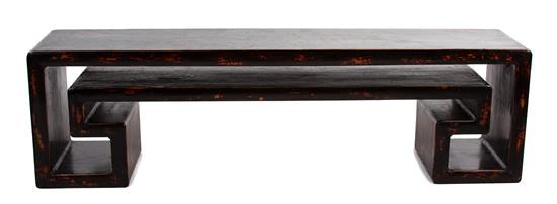 A Chinese Black Lacquer Angular Scroll Table Height 18