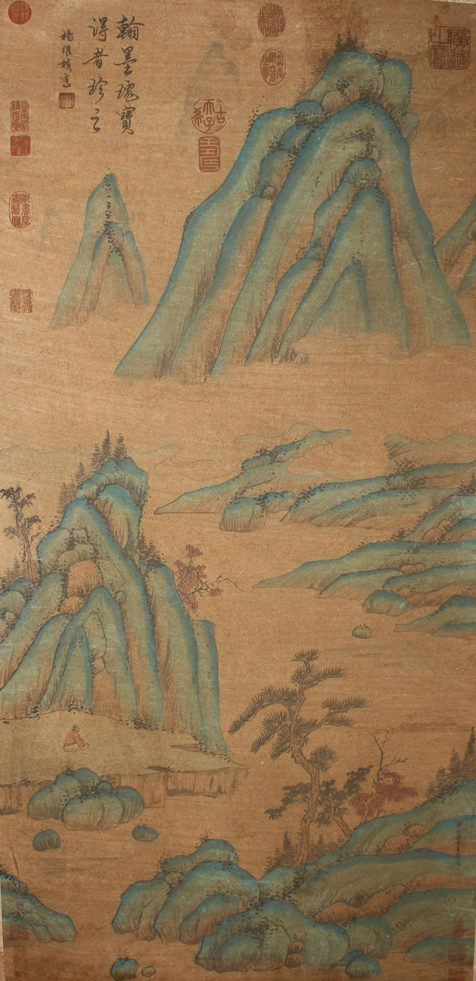 A Chinese Blue-coding Mountain-view Fortune Scroll