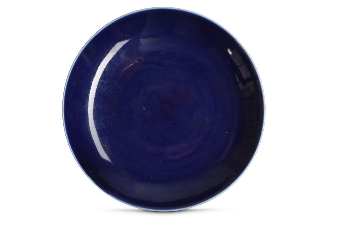 A CHINESE BLUE-GROUND 'DRAGON' DISH.