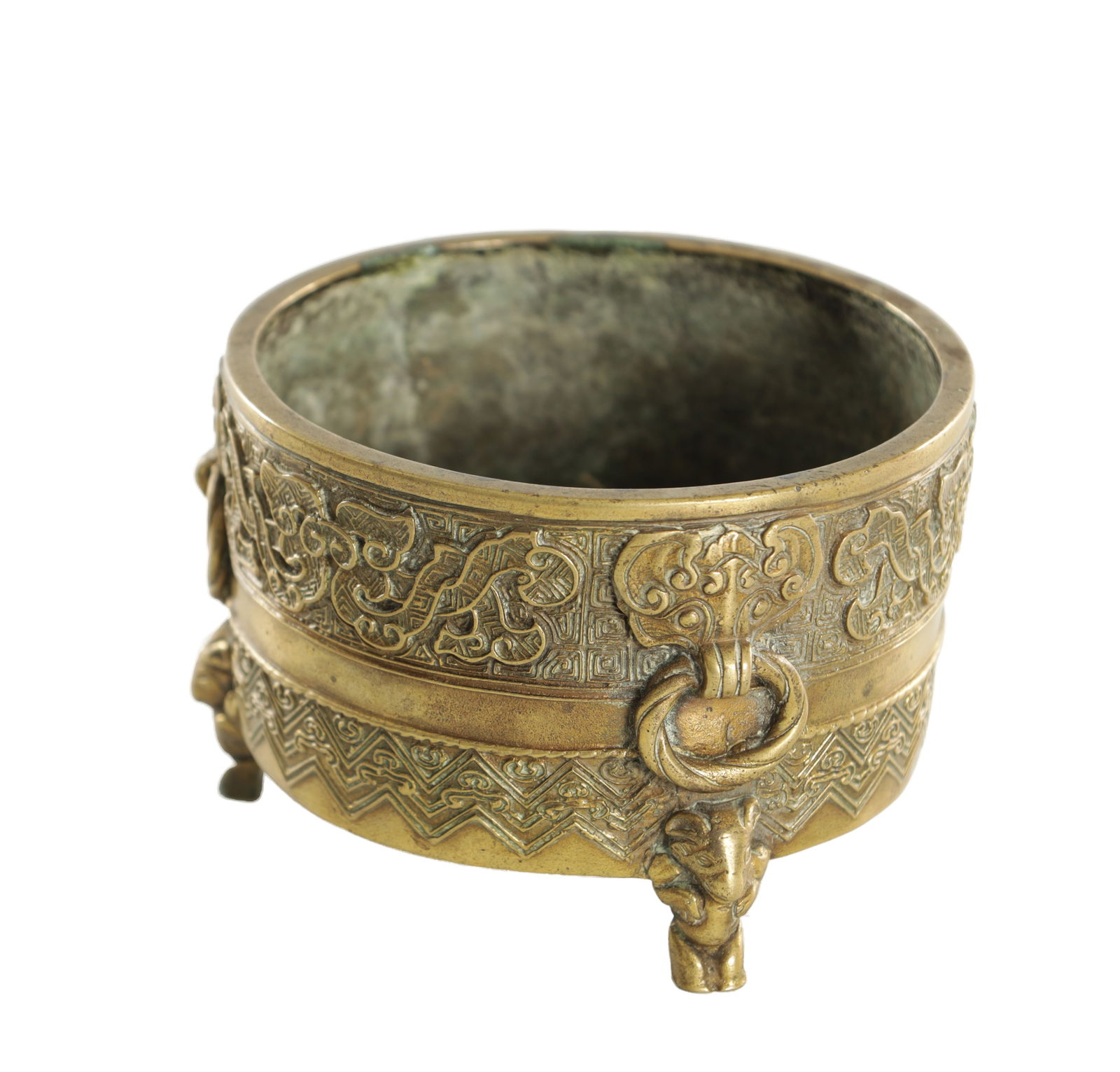 A BRONZE DING WITH ANIMAL-FACE MOTIFS AND UPRIGHT FINIALS, THREE LEGSTop Notch Collections4.4(56)$2,8005 days Left