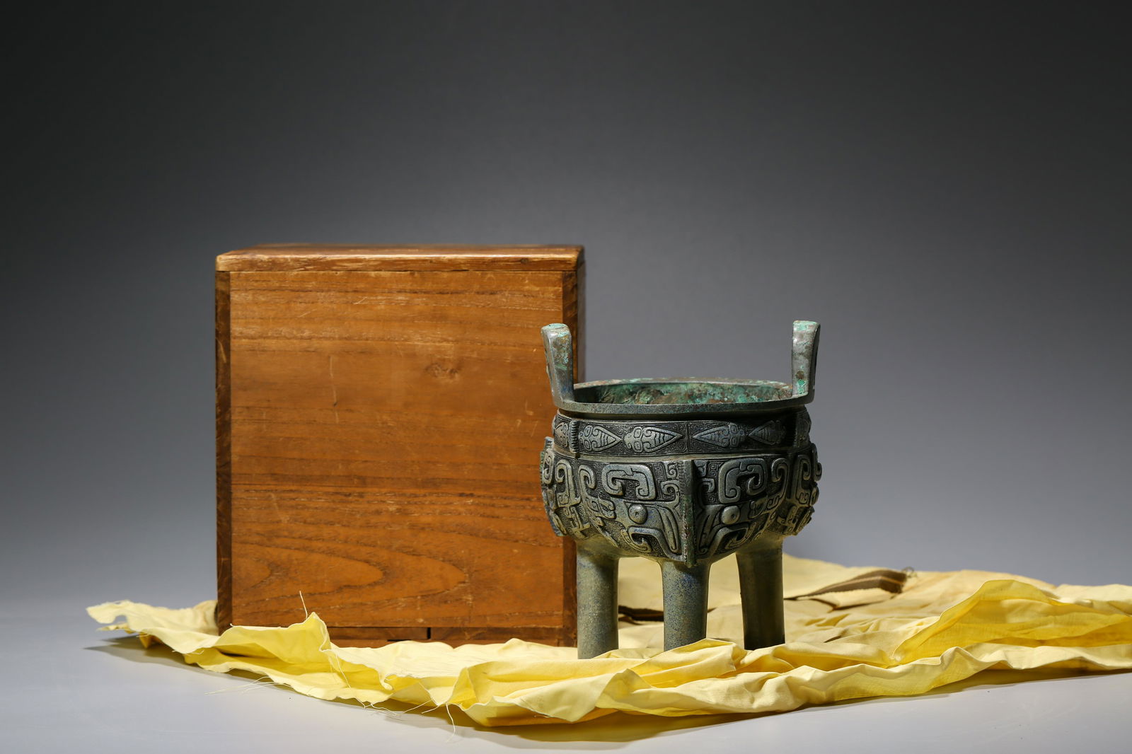 A CHINESE BRONZE TRIPOT VESSEL