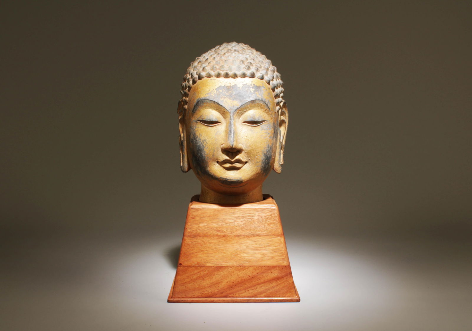 A Chinese Buddha Head with Stand