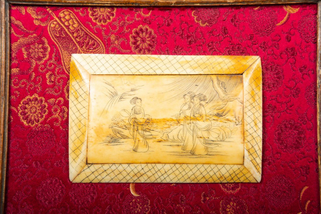 A Chinese Carved Bone Panel with a Scene
