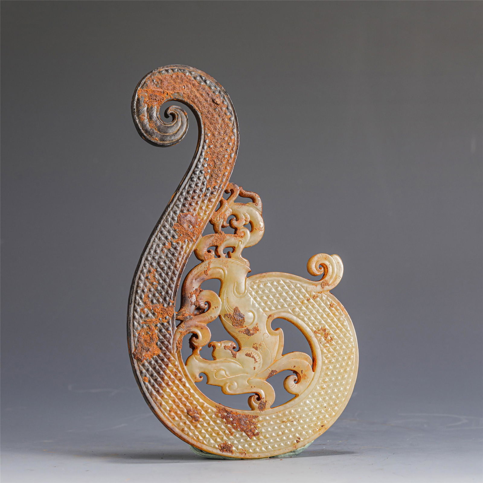 A CHINESE ARCHAISTIC CARVED JADE DRAGON