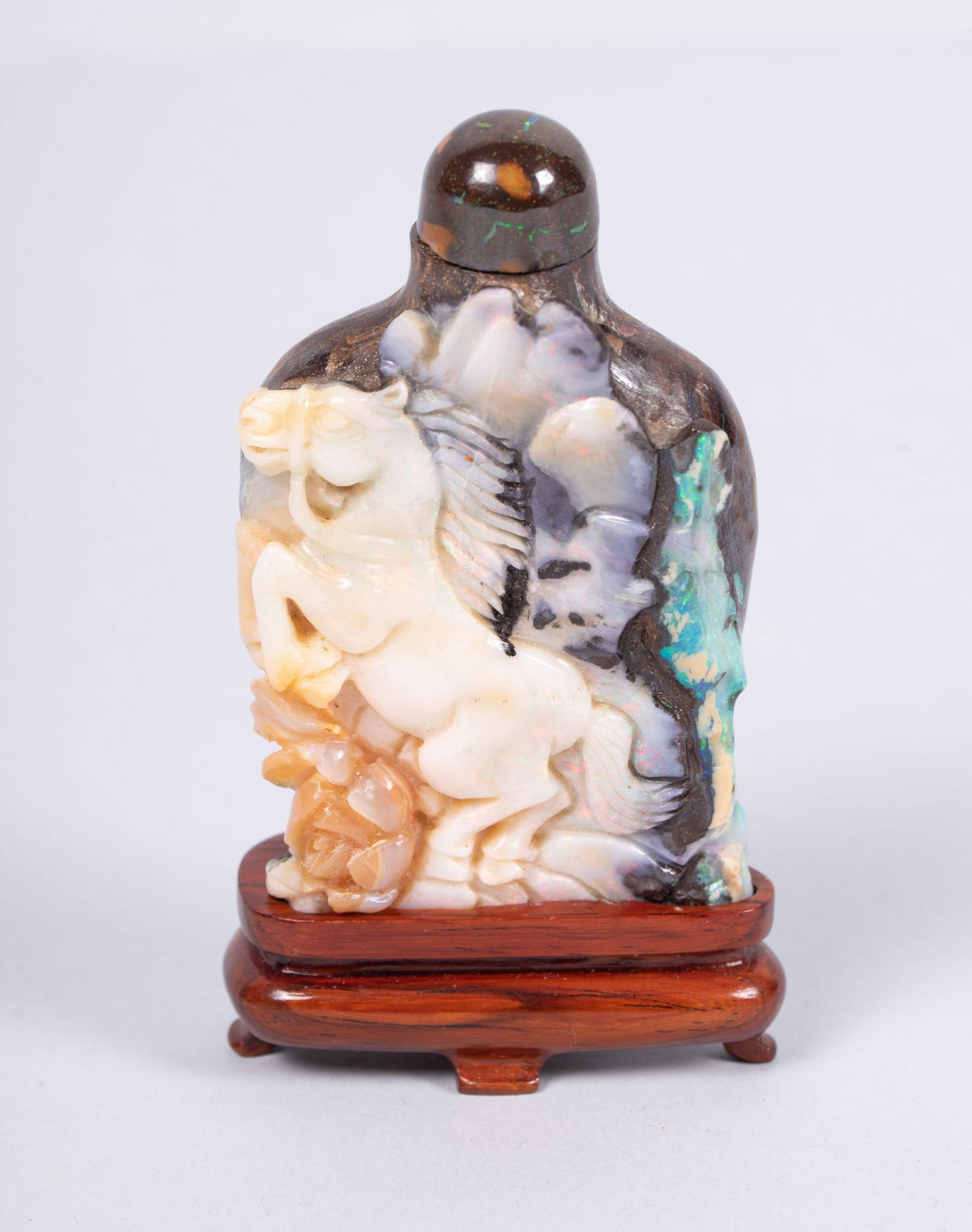 A Chinese Carved Opal Stone Snuff Bottle
