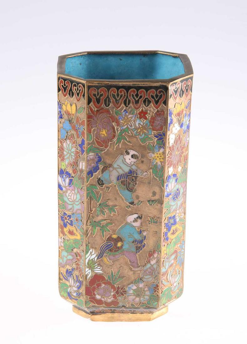 A CHINESE CLOISONNÉ ENAMEL OCTAGONAL BRUSH POT