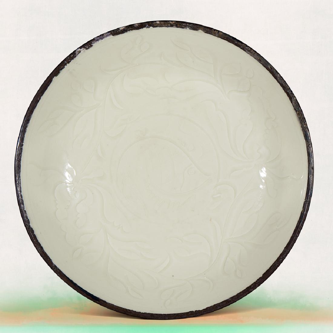 A CHINESE DING WARE SILVER-BOUND RIM 'FLOWER' PATTERN