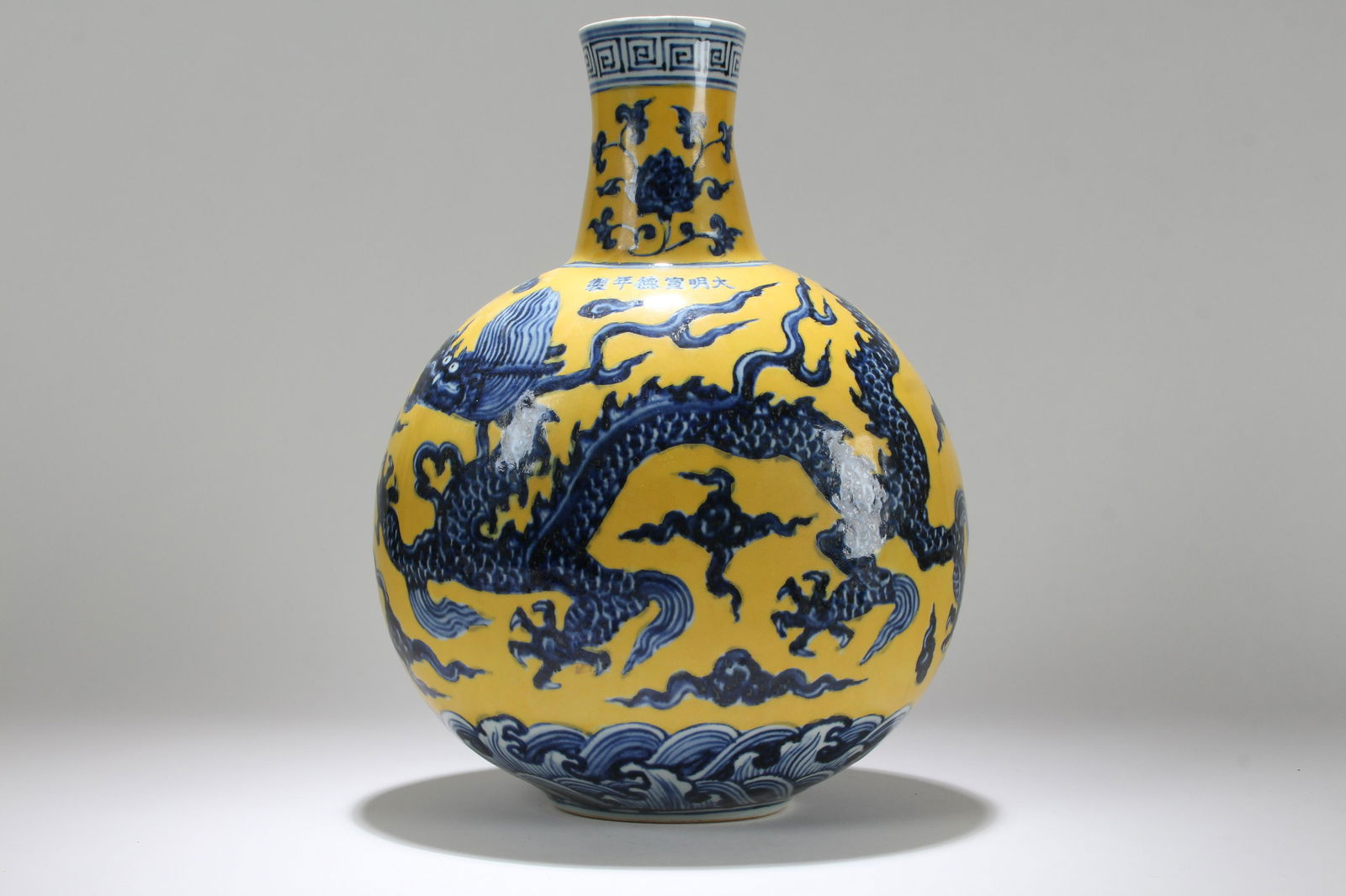 A Chinese Dragon-decorating Yellow-coding Porcelain Fortune Vase
