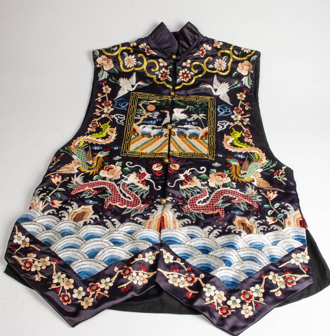 Chinese Qing Style Embroidered Court Robe Panel with Crane Rank Badge & Five-Clawed DragonsBridge's Auction$700