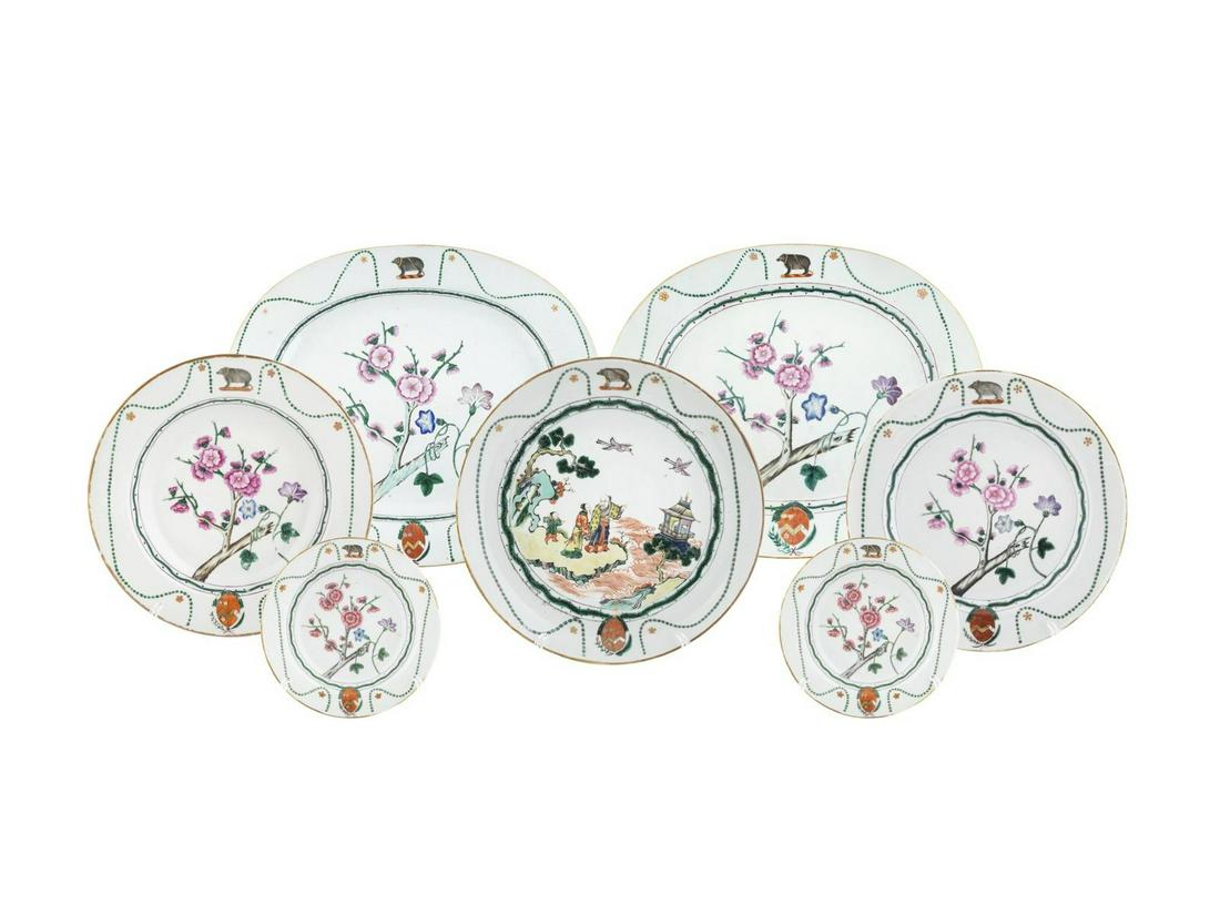 A Chinese Export Armorial Porcelain Partial Dinner