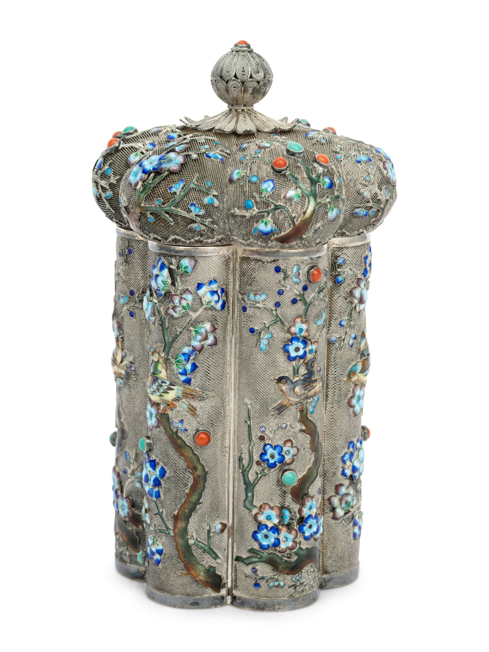 Antique Chinese Repouse Silver & Cloisonne Enamel Box4 days LeftChinese Cloisonné Lidded JarChinese Export Silver Filigree and Enamel Tea Caddy5 days LeftFine Chinese Export Gilt Silver Filigree Enamel Tea Caddy Inlaid w/Coral & Turquoise, 486.5g7 days LeftChinese Pewter Tea Caddy with Stone Inlays6 days LeftA Chinese Cloisonne Enamel Trinket Box, 20th Century, 81YC2 days LeftChinese Cloisonne & Enamel Gilt Silver Covered Pot, 19thC/20thCMar 15, 2026ANTIQUE CHINESE SILVER AND JADE JAR.3 days LeftAn Antique Chinese Silver and Jade Tea CaddyFeb 22, 2026A Chinese Silvered Porcelain Trinket Box, 20th Century, 82FG2 days LeftA Rare Gilt Silver Figure Pattern Cover JarMar 04, 2026A Qing Dynasty sterling silver inlaid treasure lid boxMar 07, 2026A Chinese export porcelain tea caddy and cover, 18th century,Qing Chinese Porcelain Famille Rose Tea Caddy6 days LeftAn Exquisite Enamel Lotus Pattern Tea CaddyMar 04, 2026Chinese Champleve Enamel Urn