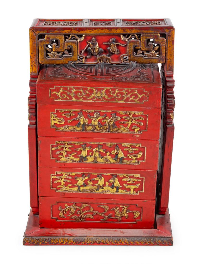 A Chinese Export Gilt and Lacquered Locking Cabin