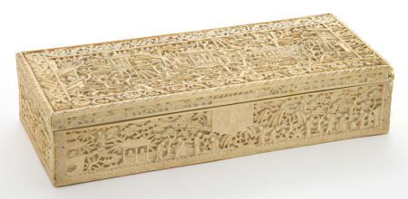 AN ANGLO-INDIAN CARVED SANDALWOOD JEWELLERY BOX, PROBABLY MYSORE, 19TH CENTURYKew Auctions 4.3(7)£180Mar 06, 2026