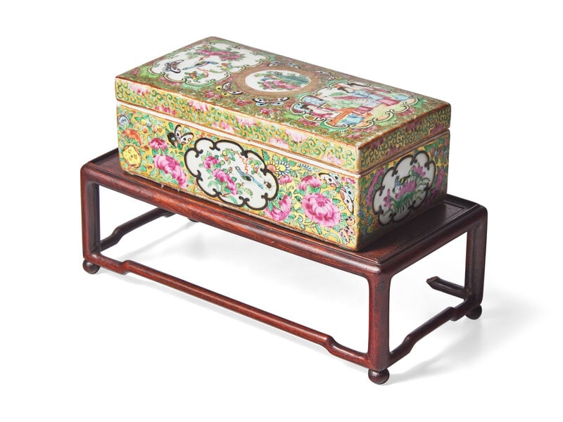 A Chinese Export Porcelain Rose Medallion Rectangular Covered Box