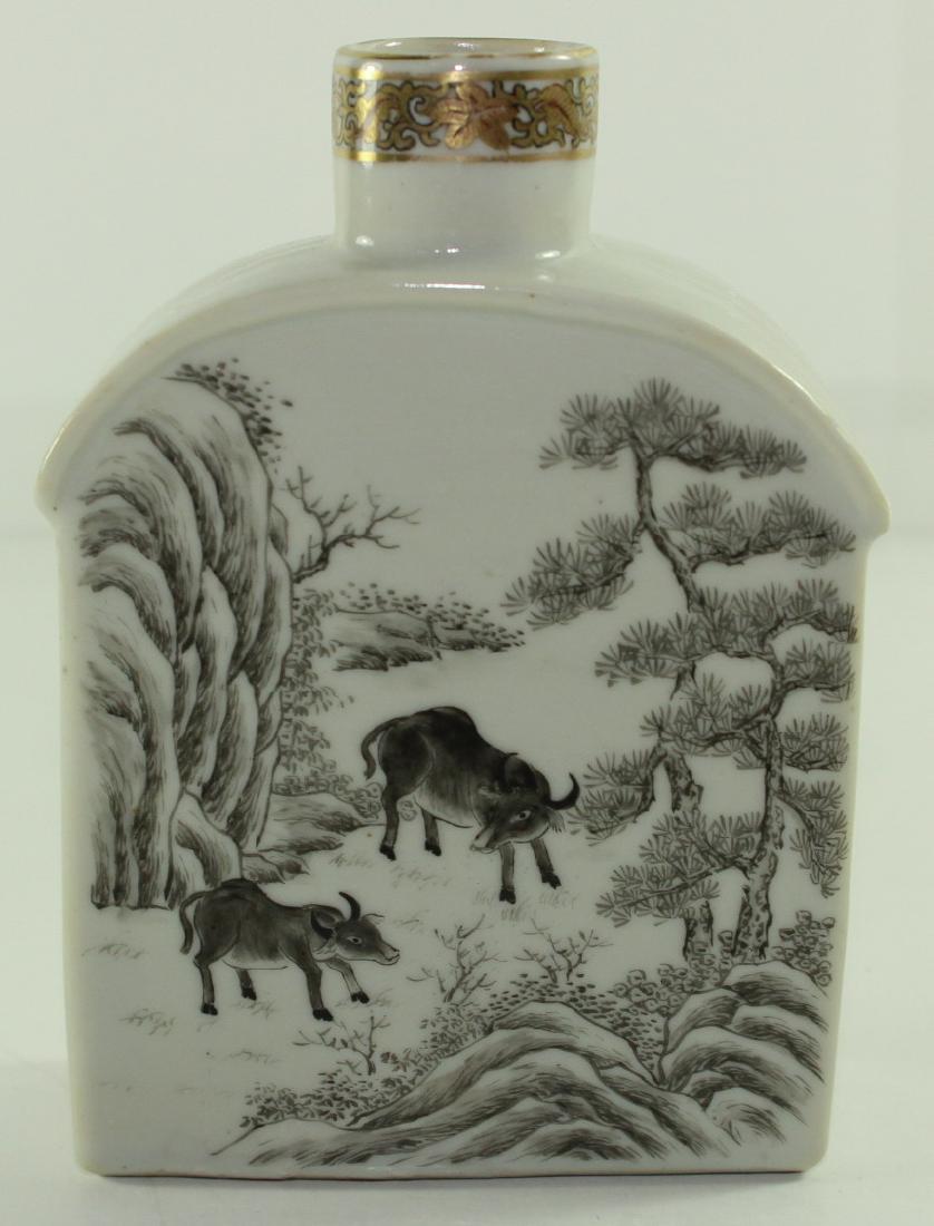 Chinese Export Porcelain Tea Caddy and Cover Decorated in the Meissen Style and a Teabowl and SaucerChinese Export Porcelain Tea Caddy and Cover Decorated in the Meissen Style and a Teabowl and Saucer with Domestic Scenes Unmarked. The caddy 5 x 2 5/8 in. diam., the bowl and saucer 2 x 4 1/2 in. dia