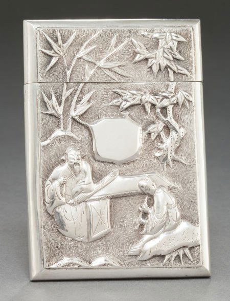 A CHINESE EXPORT SILVER CARD CASE Maker unident
