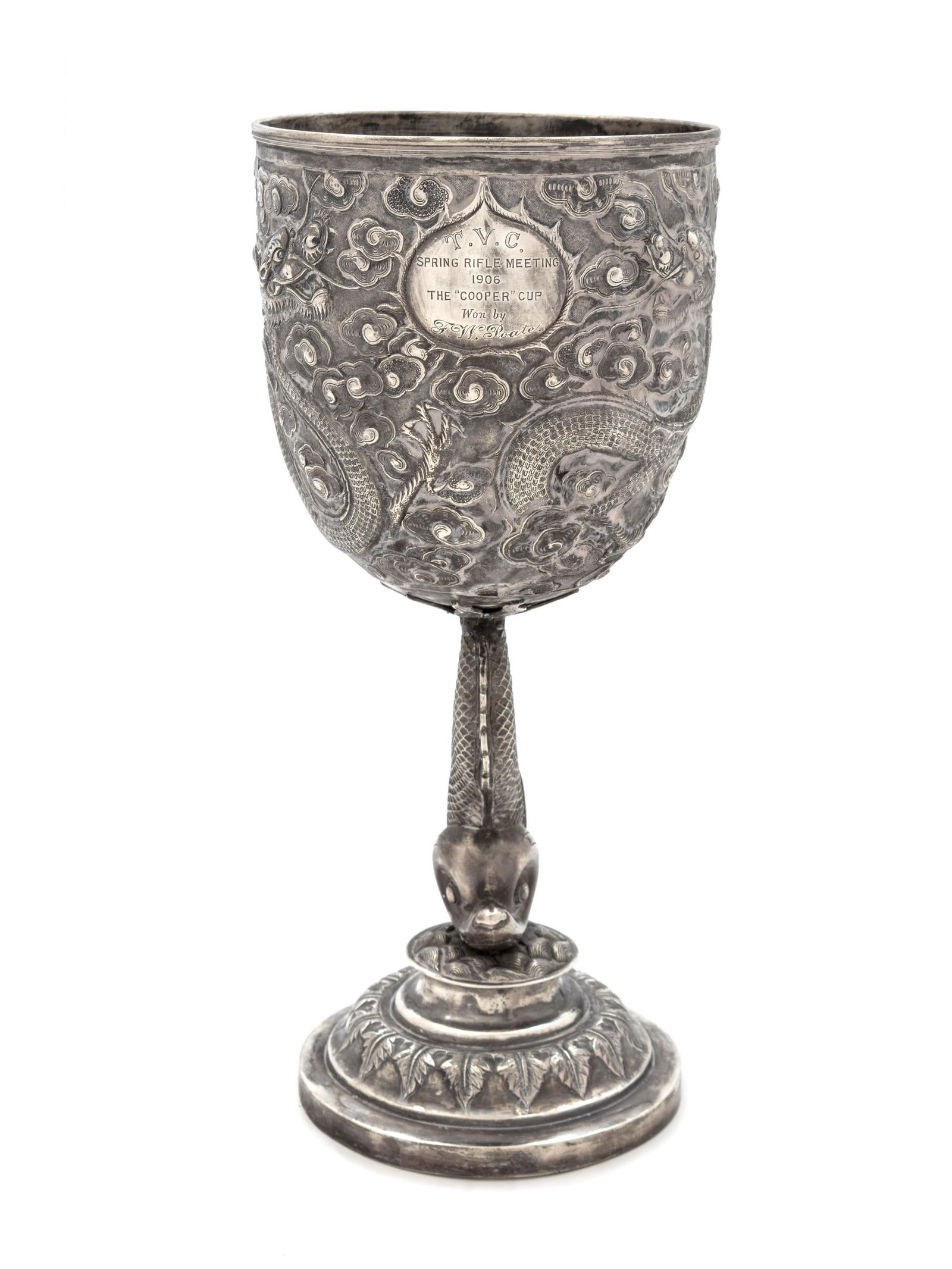 A Chinese Export Silver "Cooper" Trophy Cup Height 10