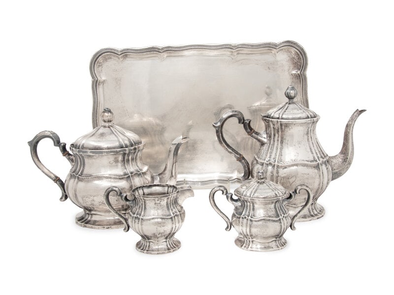 (Lot of) 3 Sterling Silver Service Items, 2 by Emil Hermann6 mins Left(5) ENGLISH ELKINGTON & CO. STERLING SILVER TEA & COFFEE SERVICE391 Lots AwayAmerican Aesthetic Silver-Plate Four Piece Coffee Service, late 19th c., Coffee- H.- 12 1/4 in., W.-5 days LeftFive Piece English Silver Plate Tea ServiceMar 12, 2026James Dixon & Sons Silver Plate Coffee Service, 5Mar 07, 2026Edward VII Sterling Silver Tea and Coffee ServiceMar 15, 20261940s Silver Plate Coffee and Tea Service by F. B. Rogers - 4 Piece Set6PC STERLING TEA SERVICE, INTERNATIONAL, 133 TOWMar 07, 2026A six piece German 800 standard silver tea and coffee service, Wilhelm Binder, Schwabisch Gmund3 days LeftE.G. WEBSTER & SON SILVER-PLATED FIVE-PIECE COFFEE AND TEA SERVICEMar 04, 2026A Poole sterling silver 'Georgian' tea and coffee serviceMar 03, 2026American Silver Four-Piece Tea and Coffee ServiceMar 14, 2026Thomas Warner (Baltimore) American Silver Three-Piece Tea Service, c. 1810-1830Mar 08, 2026Five-Piece Silverplate Tea and Coffee Service in the “King Francis" Pattern with TrayMar 07, 2026Five-Piece Silverplate Tea and Coffee Service with Large Serving TrayMar 07, 2026Mexican Sterling Silver Tea and Coffee ServiceMar 15, 2026