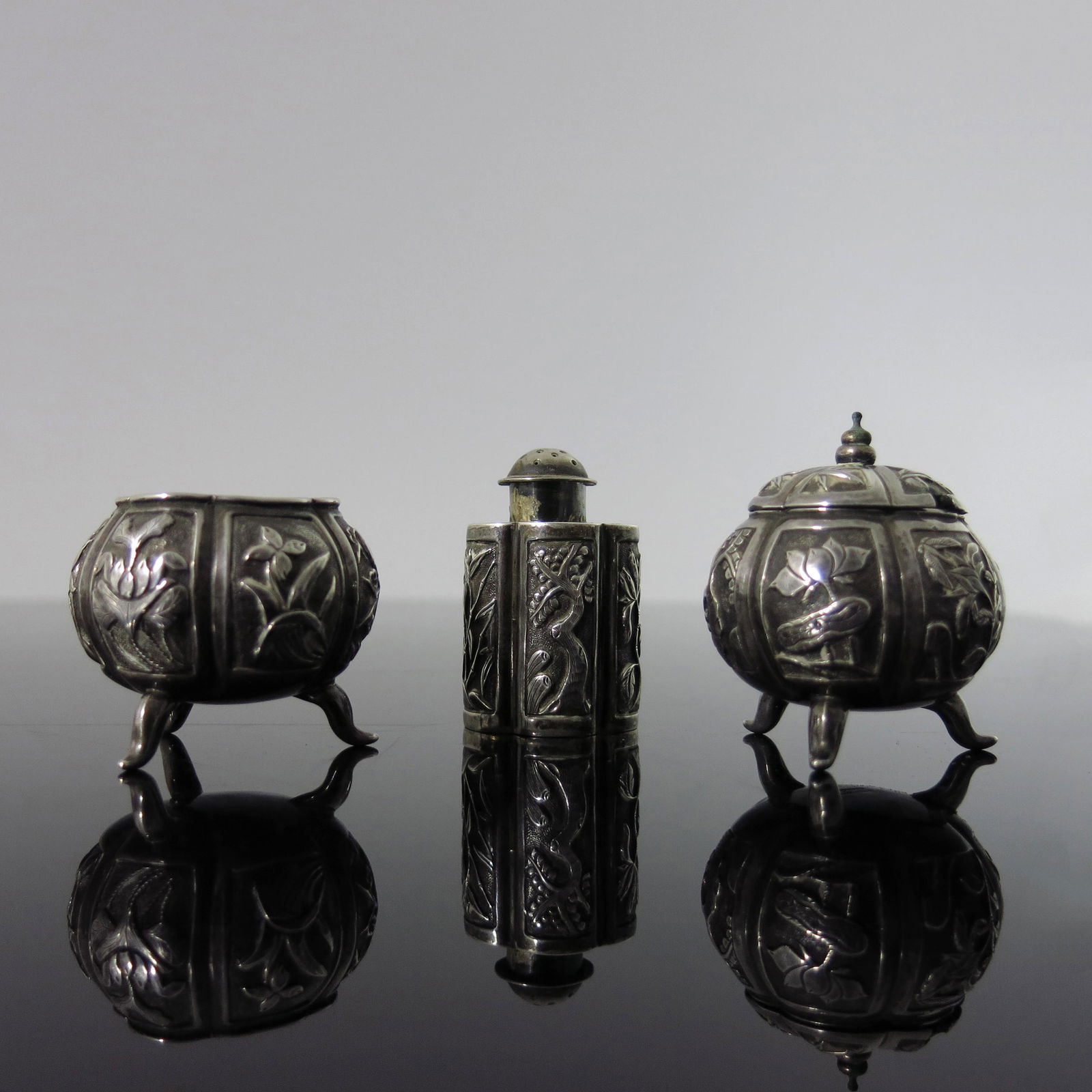 A Chinese export silver three piece crue