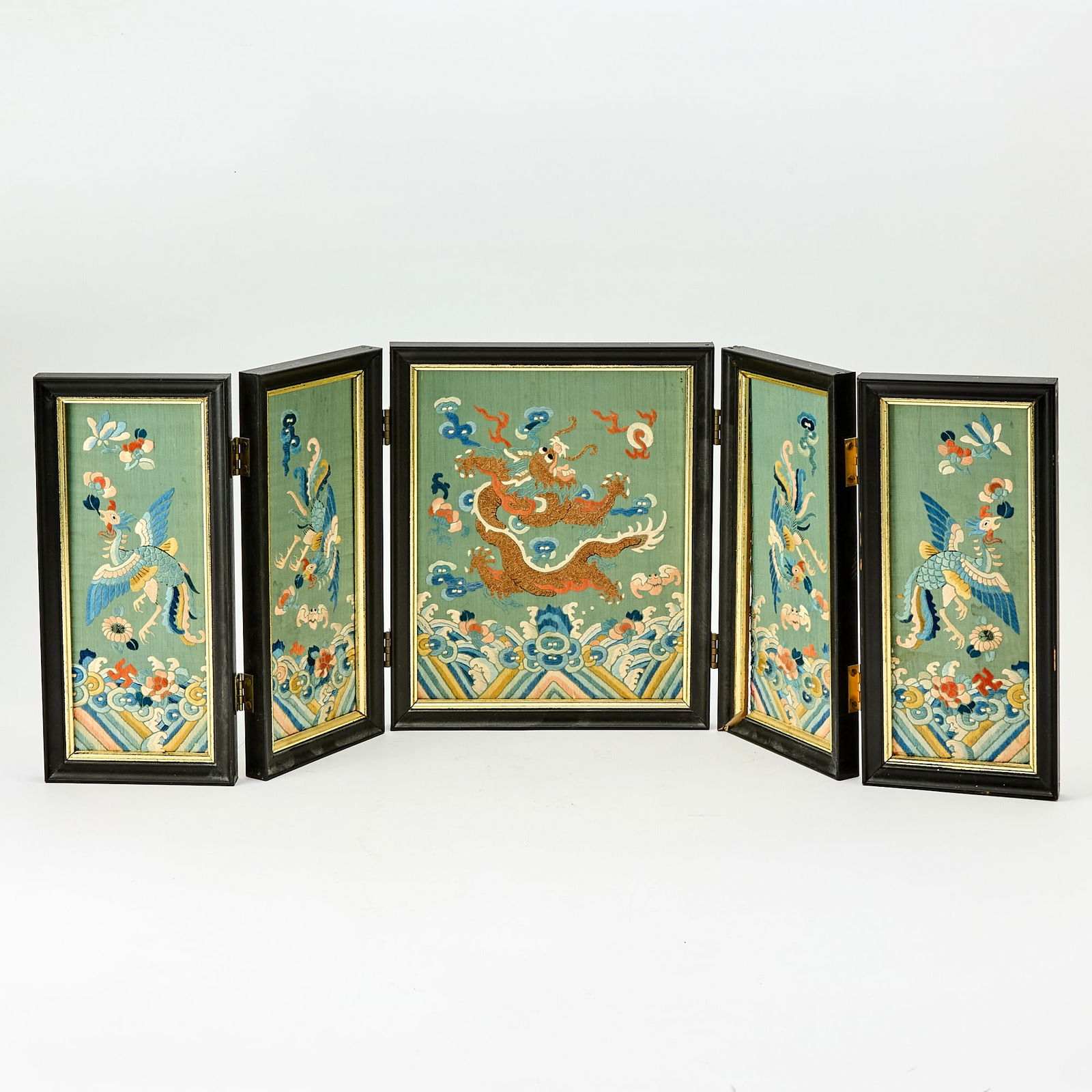 A Chinese Five Panel Silk Screen Qing Dynasty