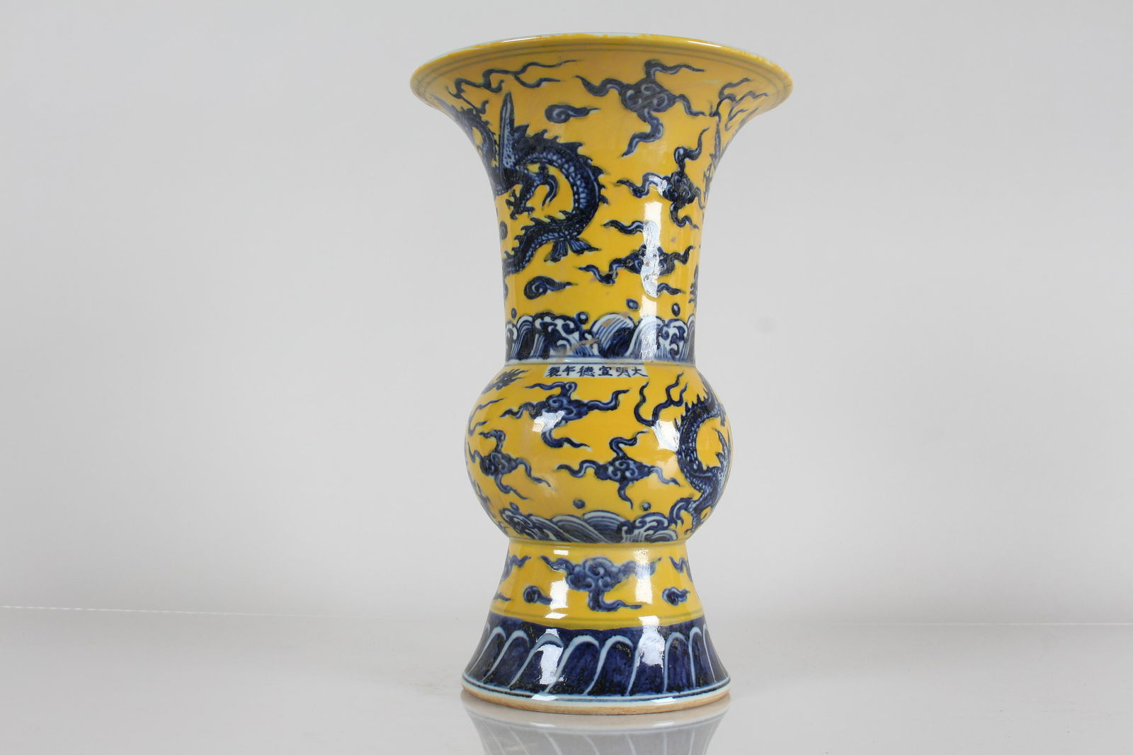 A Chinese Flat-opening Yellow-coding Dragon-decorating Porcelain Vase