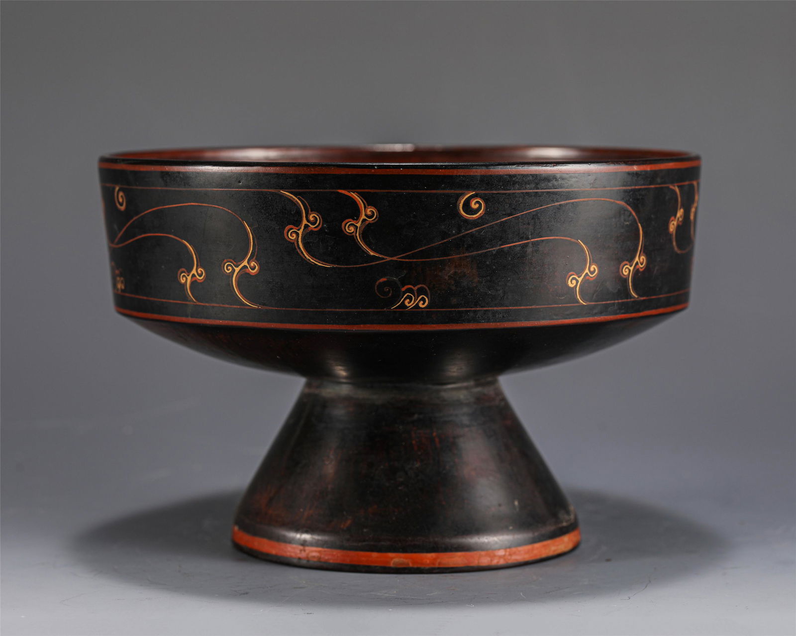 A CHINESE GOLD-PAINTED LACQUER-WARE STEM FRUIT PLATE