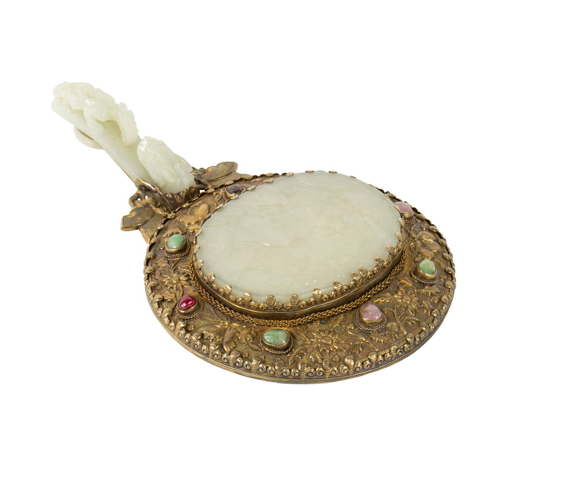 Chinese Jade-Inlay Mirror