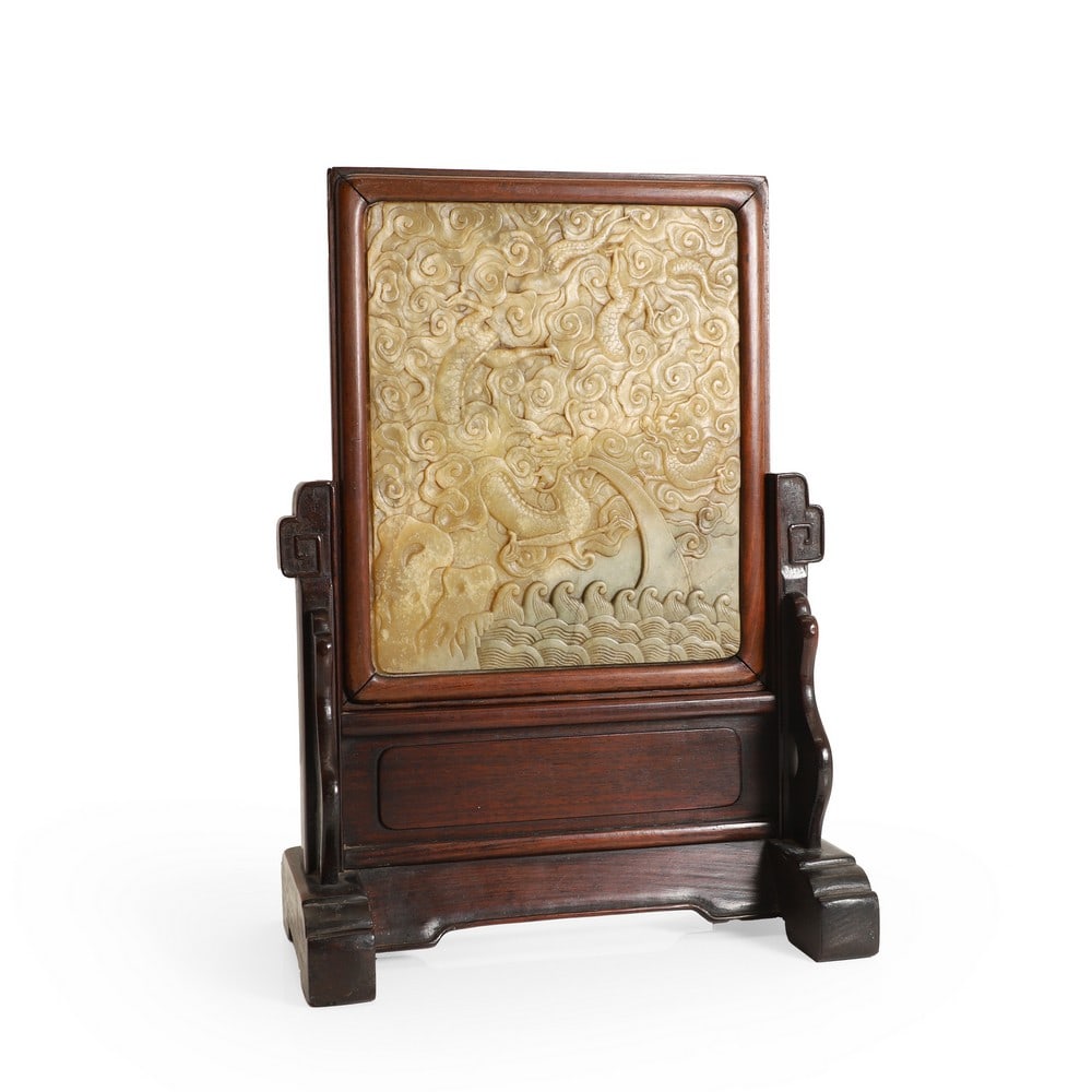 A Chinese Huanghuali Table Screen with Inset Marble Panel and Openwork Chilong Dragon CarvingsMar 08, 2026A Fine Qing Zitan-Frame Table ScreenMar 08, 2026A Qing Dynasty Hetian jade gilded landscape picture character illustrationMar 14, 2026A Qing Dynasty red sour branch shadow wooden inlaid jade dragon pattern insertMar 14, 2026A Exquisite Zitanwood Inlaid Agate Flower Pattern with poem Screen6 days LeftAn Exquisite Cloisonne Inlaid White Jade Dragon Pattern Table Screen,with poemMar 07, 2026A rosewood and boxwood inlaid carved table screenMar 08, 2026A Fine Qing Dynasty Qiangjiangcai Circular Porcelain Table Screen with Figural Narrative Scene1 day LeftA Exquisite Huanghuali Wood Inlaid Carved Red Lacquer Landscape and Figure Pattern with poem ScreenMar 11, 2026Carved Hotan Jade Table Screen with Mountain, Stone and Figure Motifs, Qing DynastyMar 04, 2026A ZITAN WOOD CARVING INLAID YUN STONE TABLE SCREENMar 05, 2026An Exquisite Zitanwood Inlaid White Jade Landscape and Figure Pattern Screen3 days LeftA Fine Qing Zitan Table Screen with Inset White Jade Landscape PlaqueMar 08, 2026An Exquisite Cloisonne Inlaid White Jade Dragon Pattern Table Screen,with poemMar 11, 2026An Exquisite Cloisonne Inlaid White Jade Landscape and Figure Pattern Table Screen,with poemMar 11, 2026Famille - rose Porcelain Plaque Table Screen with Flower PatternsMar 08, 2026