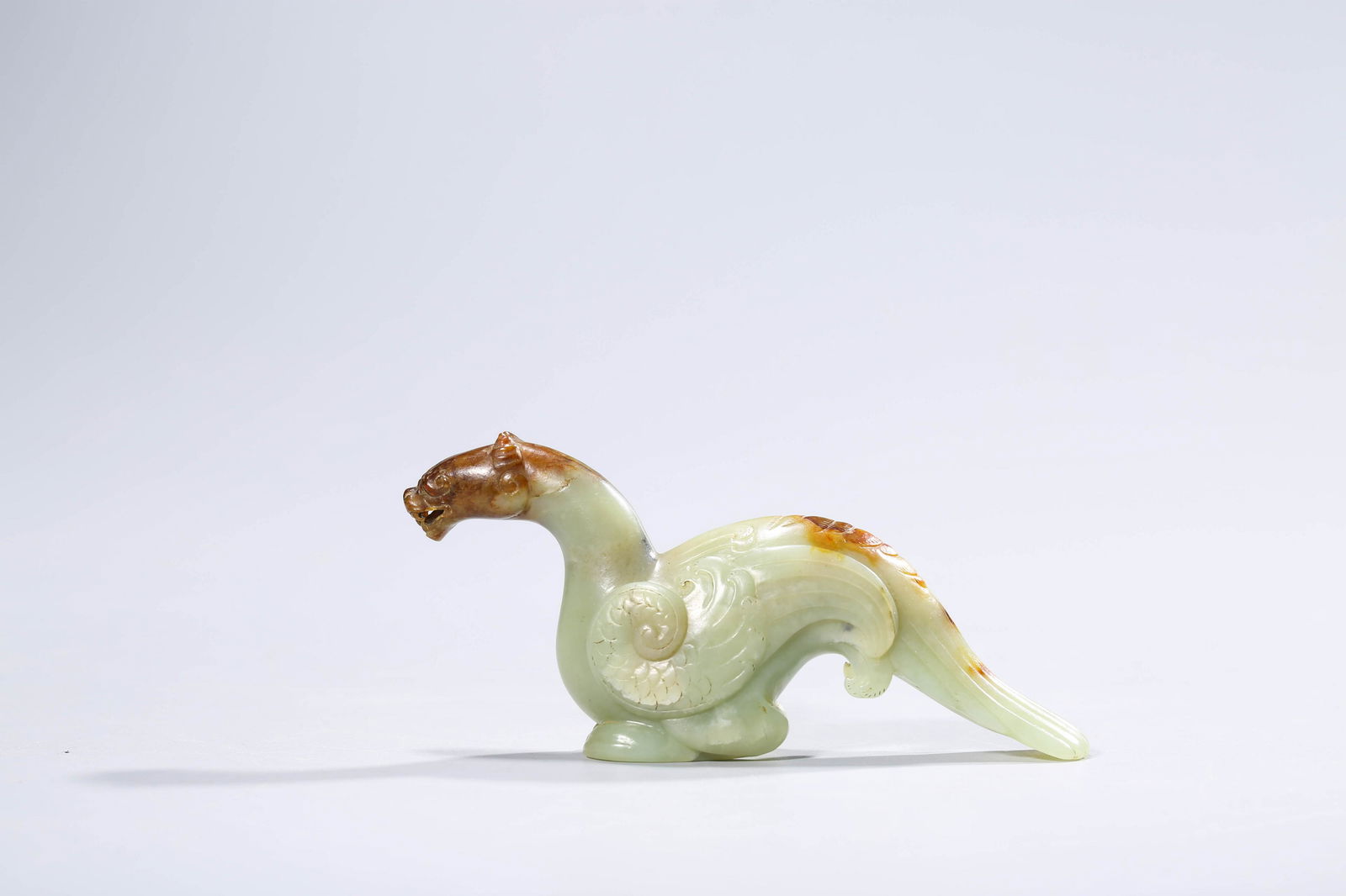 A CHINESE JADE PHOENIX CANE ORNAMET
