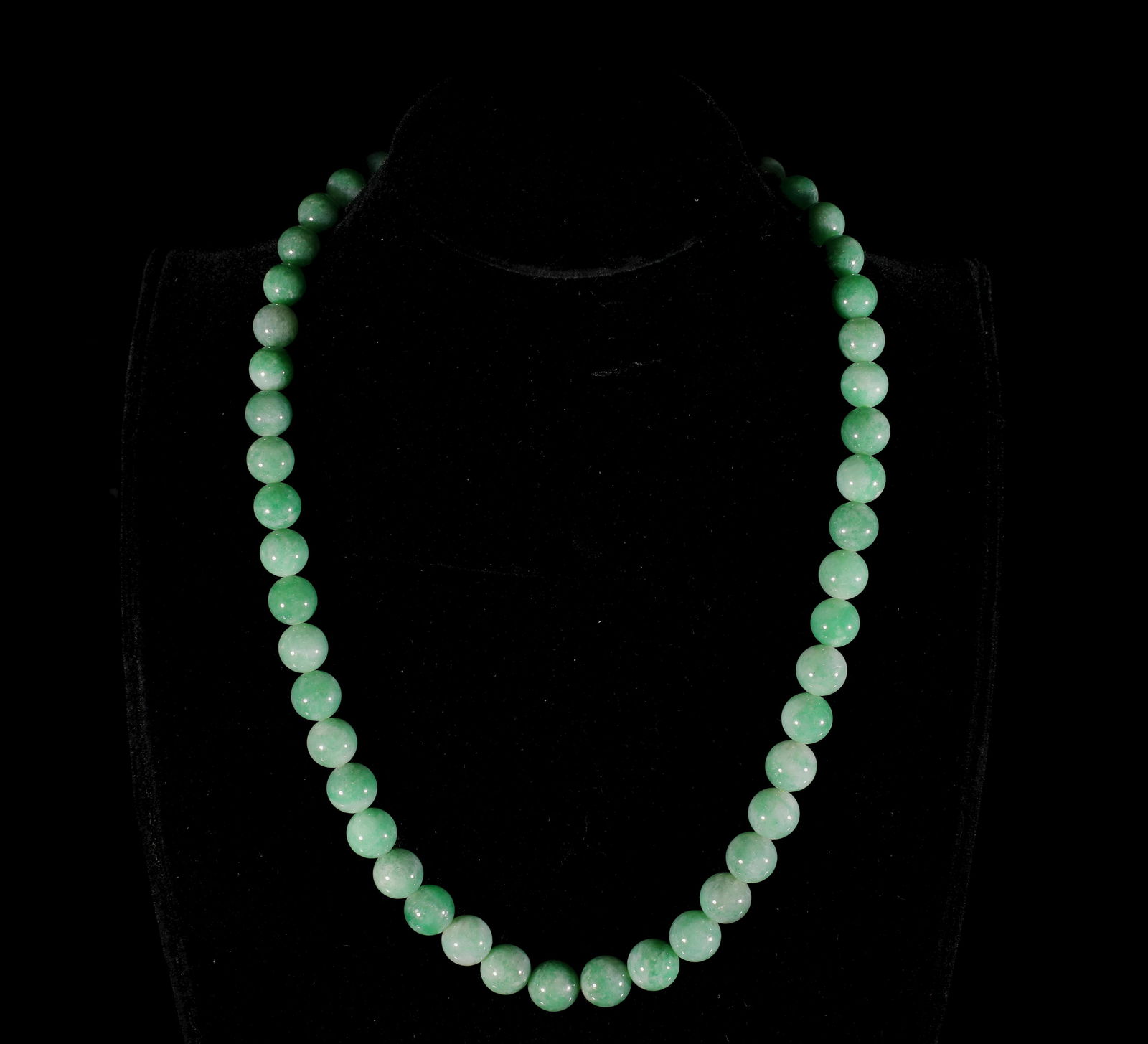 Natural Jadeite Jade Bead Green Spinach Necklace
