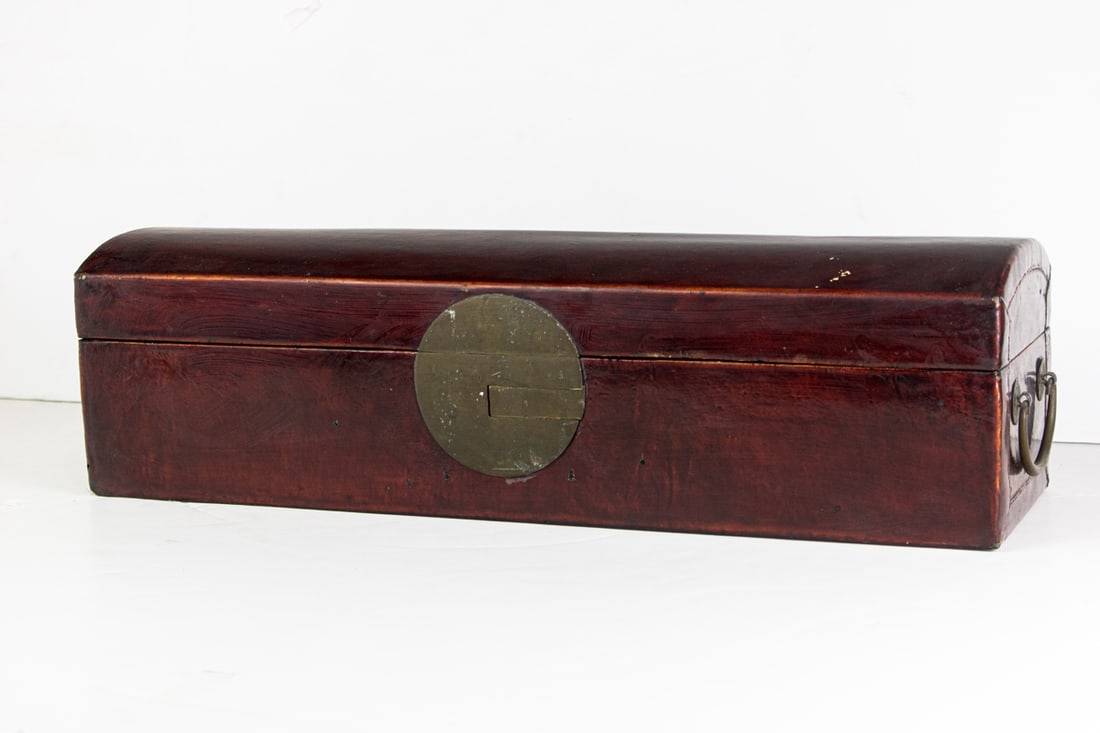 A Chinese lacquered leather scroll box