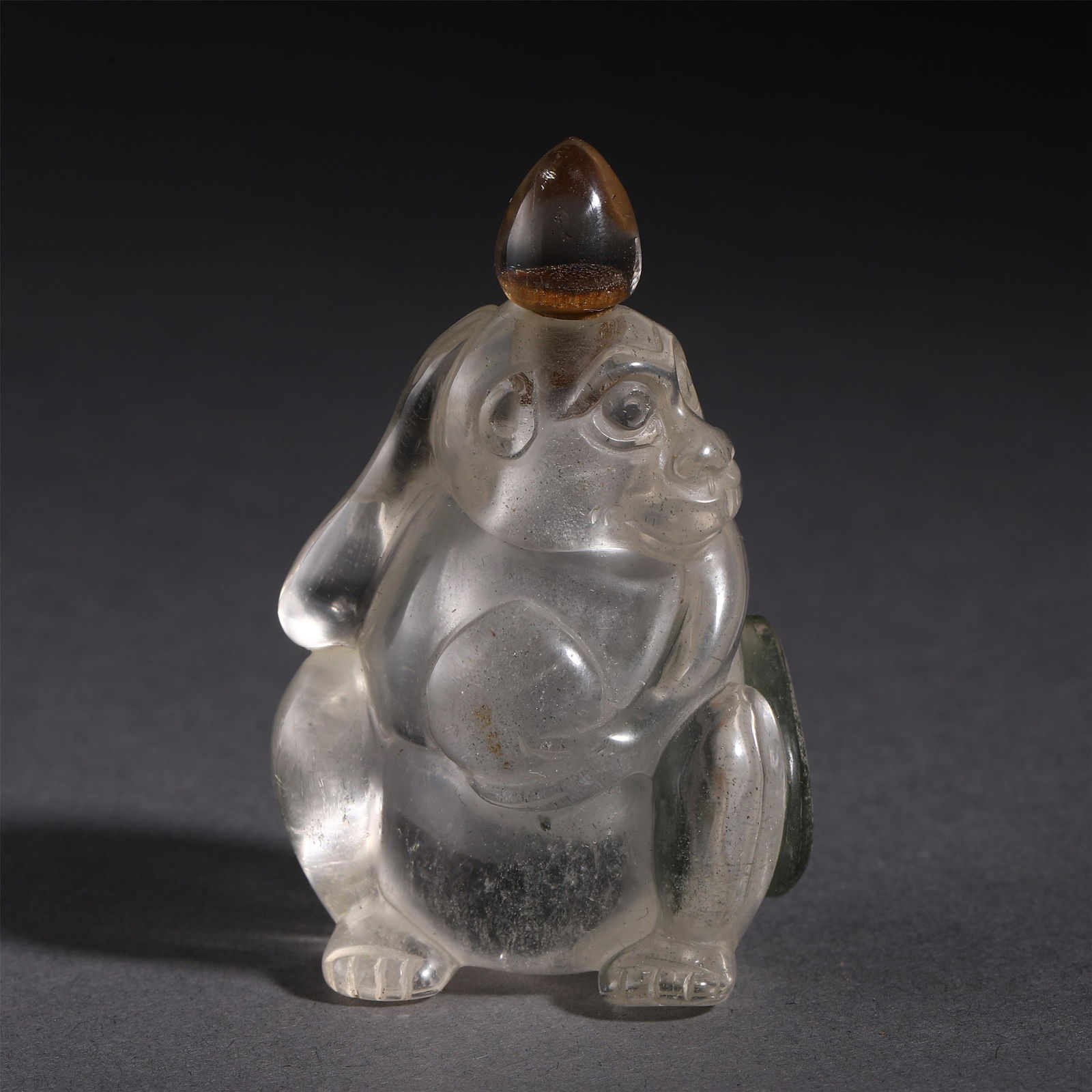 A CHINESE MOKKEY SHAPED CRYSTAL SNUFF BOTTLE
