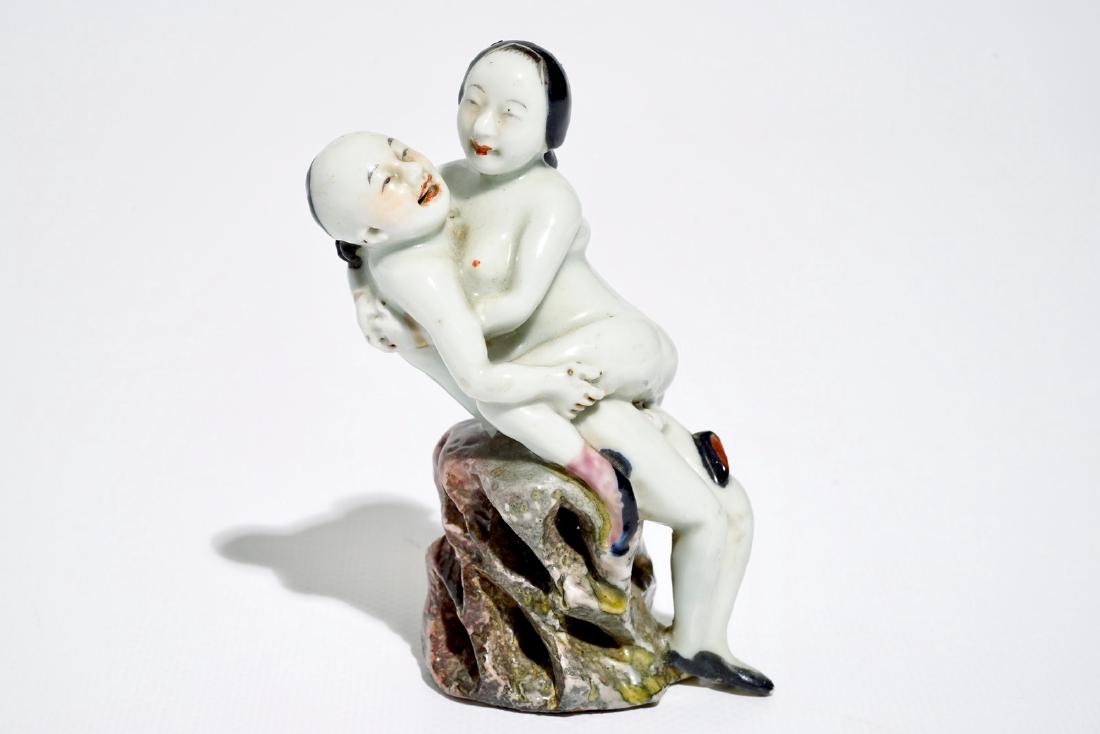 A Chinese polychrome erotical subject group, 19/20th C.