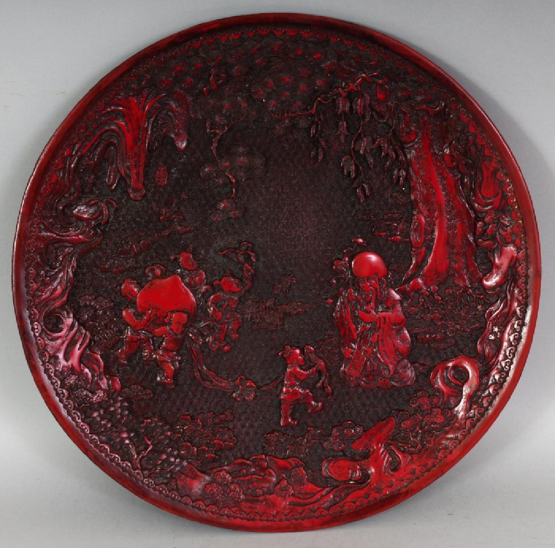 Formerly owned Qing Dynasty carved red lacquerware appreciation plate "Dragon and Phoenix BringingFreda4.3(1)€60013 hrs Left